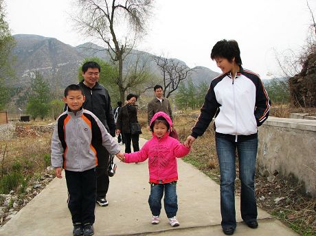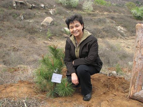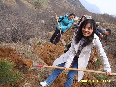 | 植樹前的合影 | 愛美的小姑娘,正準(zhǔn)備讓大山也變得像她一樣美麗。 |