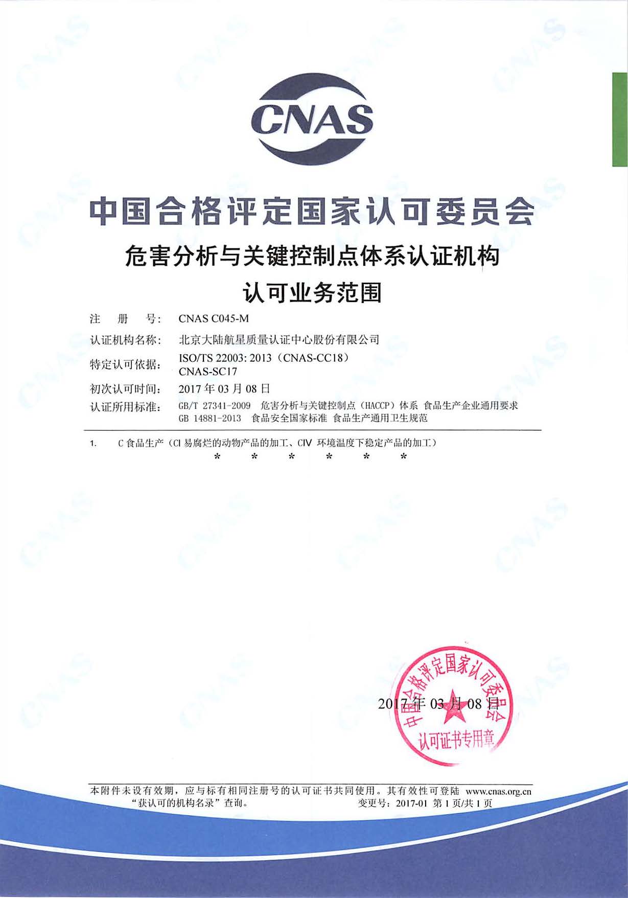 HXQC順利獲得CNAS的HACCP領(lǐng)域和ISMS領(lǐng)域認(rèn)可資格