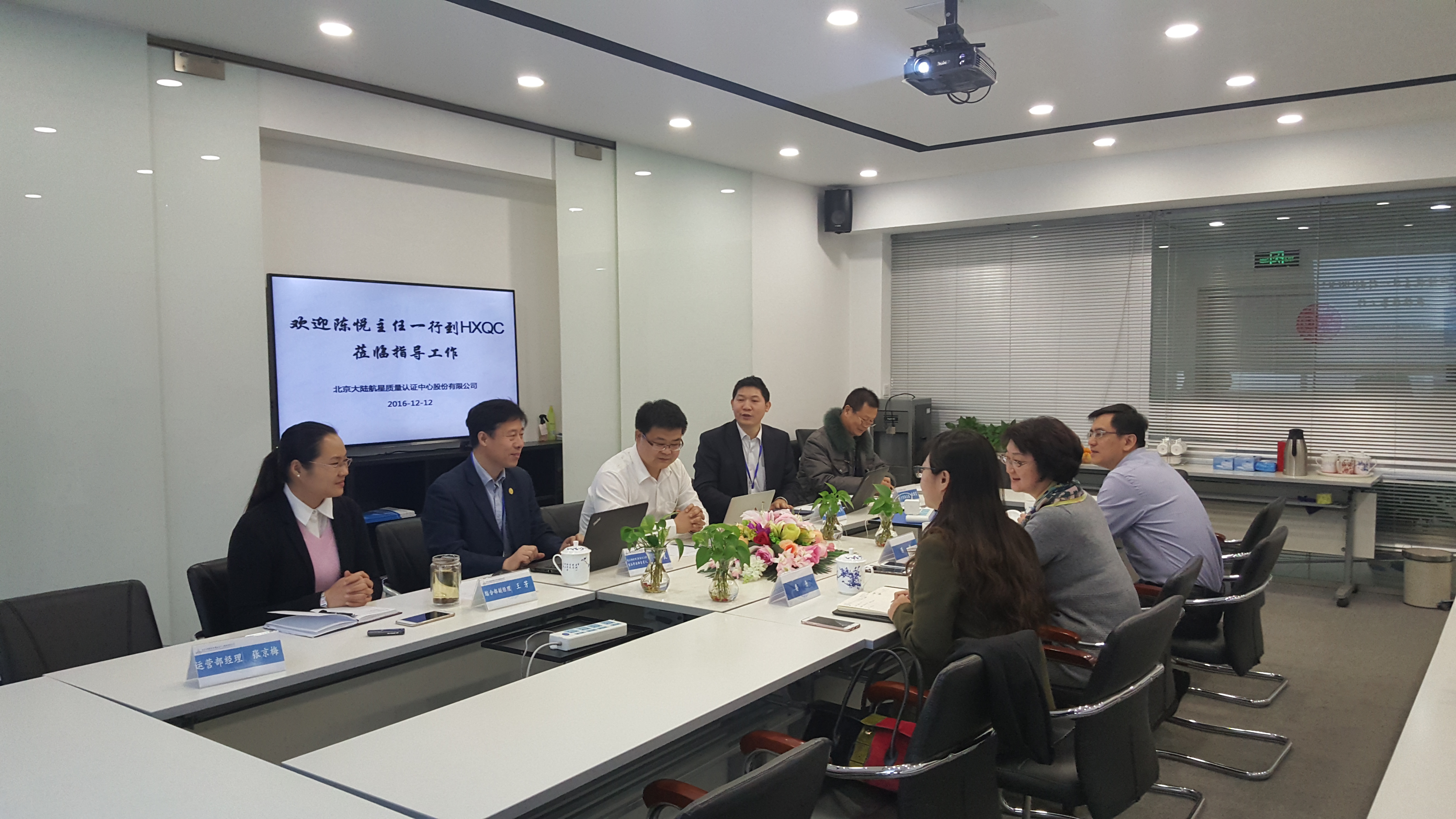 2016年12月12日中國國家認(rèn)證認(rèn)可監(jiān)督管理委員會科技與標(biāo)準(zhǔn)管理部(以下簡稱認(rèn)監(jiān)委科標(biāo)部)副主任陳悅、科技處王曉冬處長、婁丹副調(diào)研員一行三人到HXQC調(diào)研。HXQC總經(jīng)理鄭宇兵、副總經(jīng)理韓海華、人力資源總監(jiān)陸錦富、技術(shù)委員會主任兼技術(shù)部經(jīng)理趙忠良等中高層領(lǐng)導(dǎo)參加了調(diào)研會議。